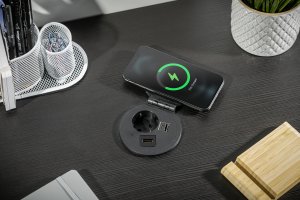 Простий у використанні мінімалістичний подовжувач Charger Plus призначений для всіх видів письмових столів і робочих поверхонь, наприклад, на кухні. Він має дуже низький монтажний елемент. Charger Plus має індуктивний зарядний пристрій на внутрішній стороні кришки – щоб зарядити телефон, потрібно підняти кришку. Він оснащений трьома змінними модулями, завдяки чому це універсальне рішення для приміщення та спільної роботи.