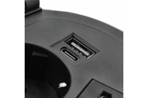 Меблева розетка CHARGER PLUS, Ø80 мм, 1хSHUKO, USB A+C, в комплекті три замінні модулі (USB-A, HDMI, RJ45), кабель 1,5 м, чорний