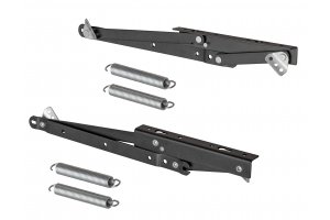 Середній кушетковий підйомник для підйому сидіння дивана, що відкриває доступ до контейнера для постільної білизни. Щоб отримати доступ до відсіку для зберігання, потрібно підняти платформу сидіння вгору. У підйомній моделі ПК-15-А використовуються подовжувачі з відповідними зусиллями. Лівий і правий підйомники включені у вартість. Матеріал: Сталь. Колір: білий і чорний.